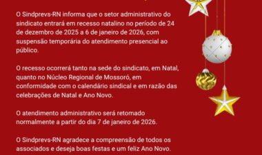 Sindprevs-RN informa recesso natalino do setor administrativo